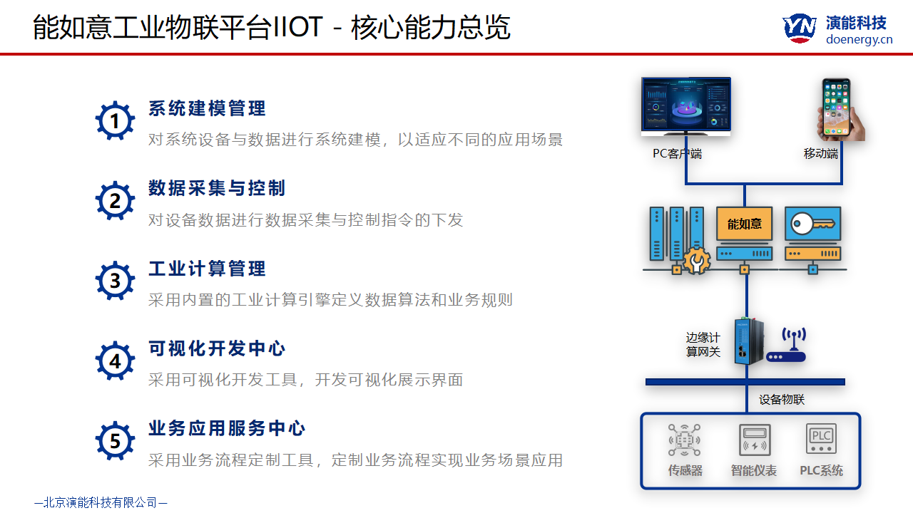 能如意工(gong)(gong)業(ye)物(wu)聯網網平(ping)(ping)臺(tai)是演(yan)能公(gong)司的(de)核心產(chan)品(pin)之(zhi)一(yi),通過互(hu)聯網與工(gong)(gong)業(ye)自動化技術(shu)的(de)結合,整合互(hu)聯網行業(ye)對高可(ke)用、大數據的(de)能力,結合工(gong)(gong)業(ye)自動化的(de)行業(ye)特定,開發的(de)一(yi)套適(shi)應(ying)多個(ge)領域多個(ge)行業(ye)的(de)工(gong)(gong)業(ye)應(ying)用云平(ping)(ping)臺(tai)系統。