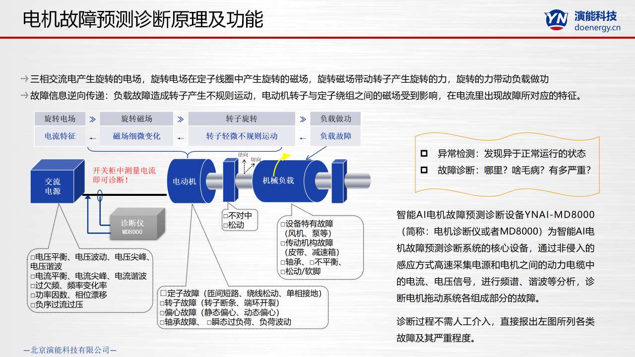 YNAI-MD8000以電機拖動系統整體作為監測診斷對象,可識別電機、剛性連接機械負載、電源等各組成部分的問題根本原因。